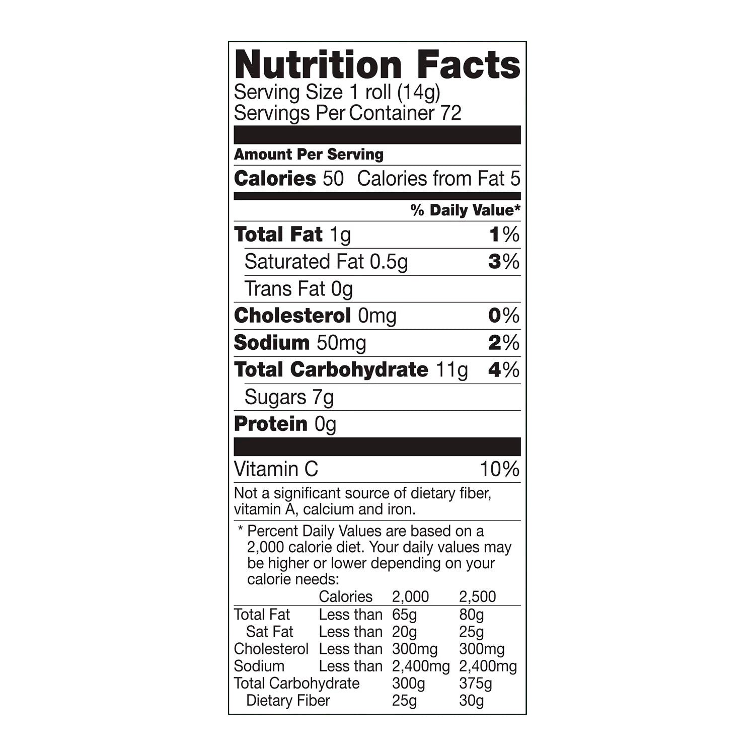 - On-the-go snack: 50 calories per roll. these individual snacks are the perfect addition to any day out
