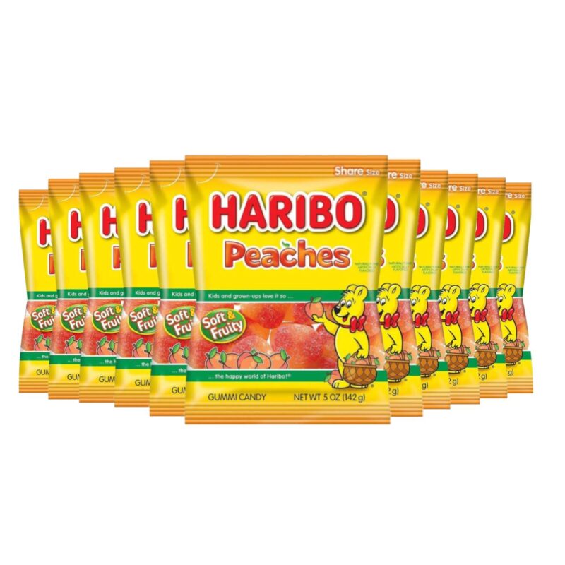 Haribo Gummi Candy, Peaches Longing for fruity indulgence? Then HARIBO Peaches are just what you need. Our soft gummy peaches are sweet, velvety soft and irresistibly delicious