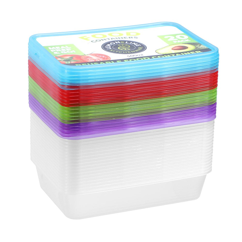 Lemon & Lime Reusable Rectangle Containers 500ml Coloured Lids 20 Pack