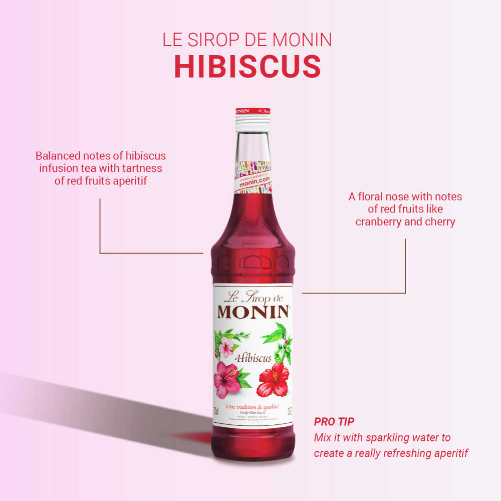 Monin Hibiscus Syrup is a versatile and essential companion for your establishment. whether a caf??. bar. restaurant. or spa. Elevate your menu with the mesmerizing taste of hibiscus. adding a burst of colour and unique flavour to a variety of drinks and culinary creations.