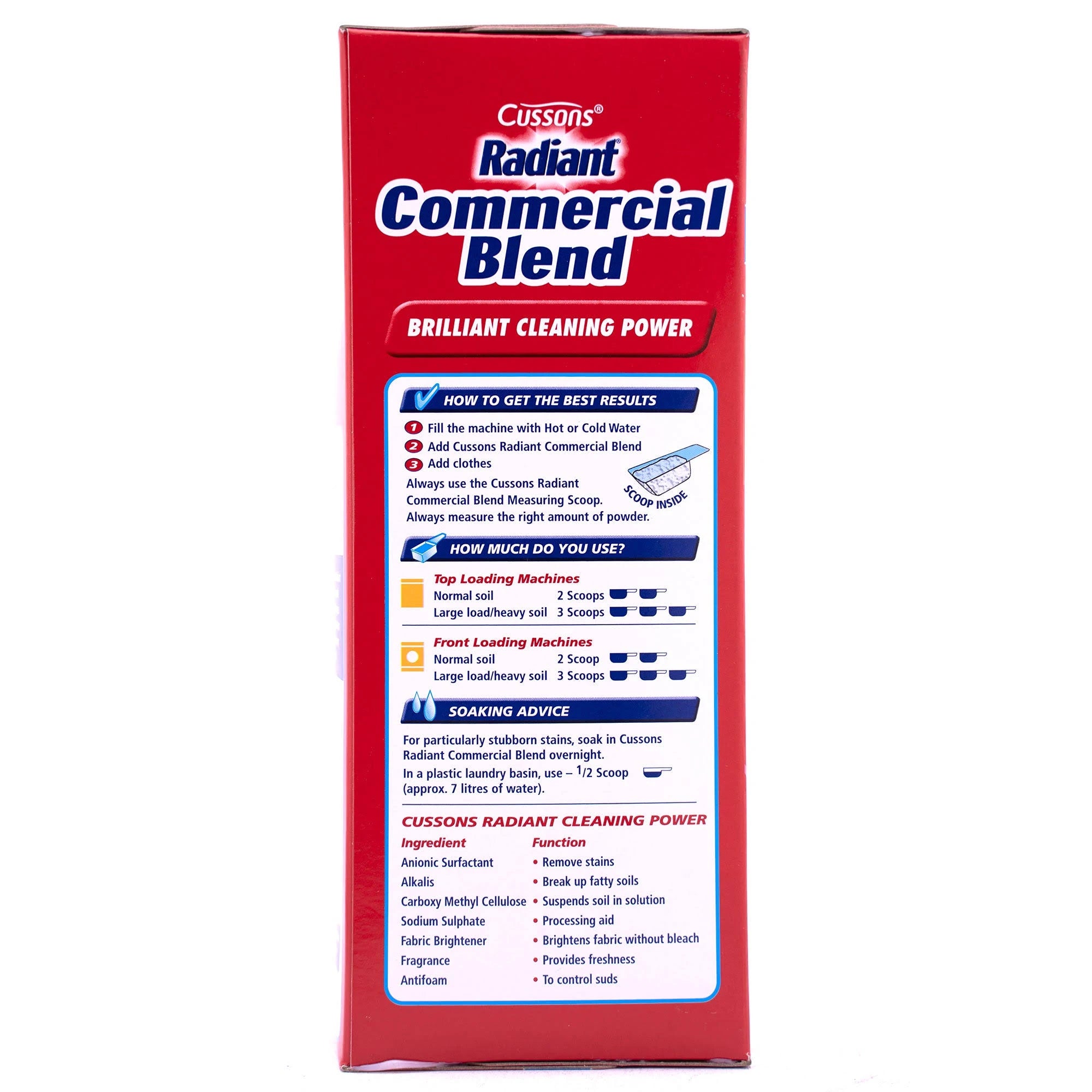 Enjoy the brilliant cleaning power and long-lasting freshness of Radiant Laundry Powder. This commercial blend is specially formulated for use in cold. warm and hot water. effectively removing stains and brightening whites with every wash!