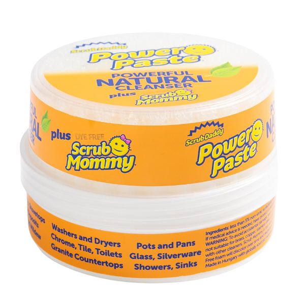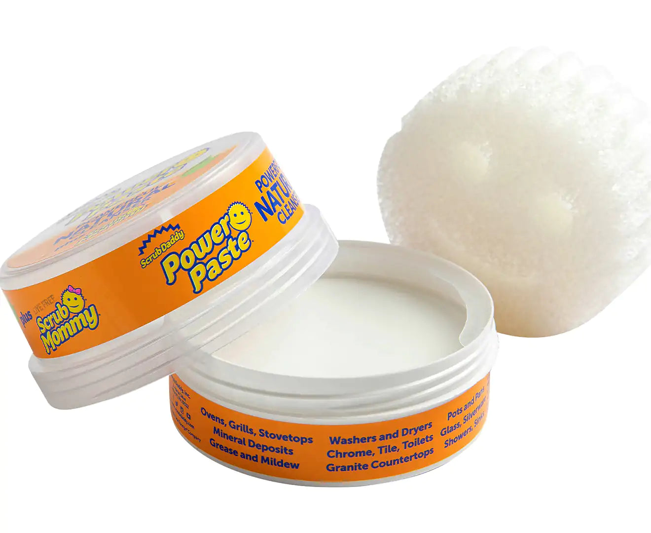 To use. generate a foam by swirling a dampened Scrub Mommy into the paste. Apply the foam to grease. soap scum. mildew or limescale stained surfaces. Rinse clean.