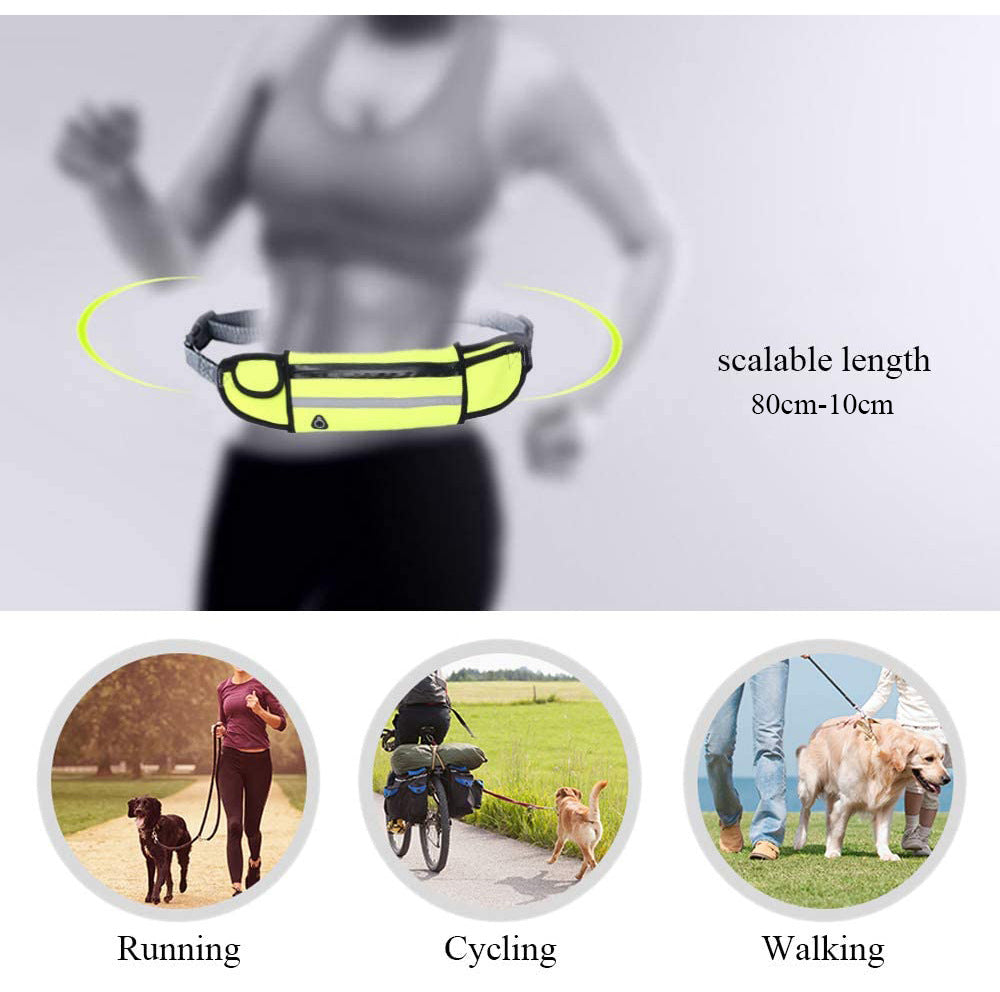 - MULTIFUNCTIONAL. hands free design with the waist wearing. you can control the pet with bodyweight rather than having your arm yanked off. Comes with a reflective fanny pouch to increase visibility in low light. enhancing safety when walking your pet in the early morning and evening. The pouch is detachable and easy to slide on or off the belt.